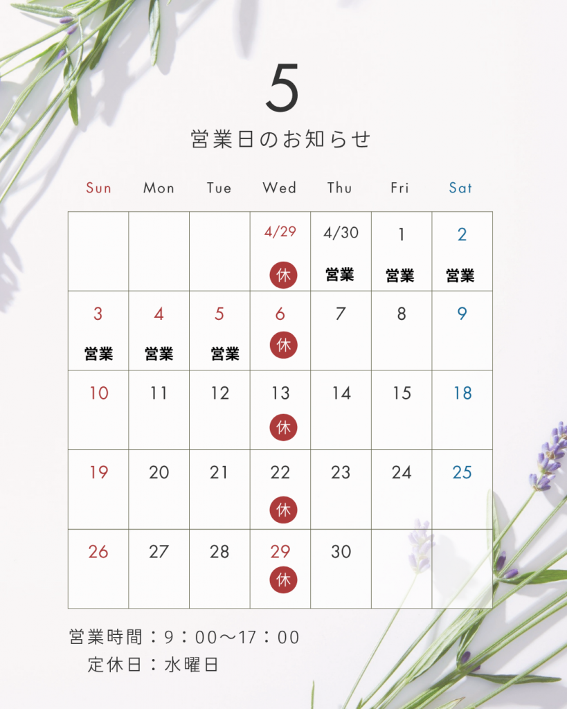 【GW営業日のお知らせ】