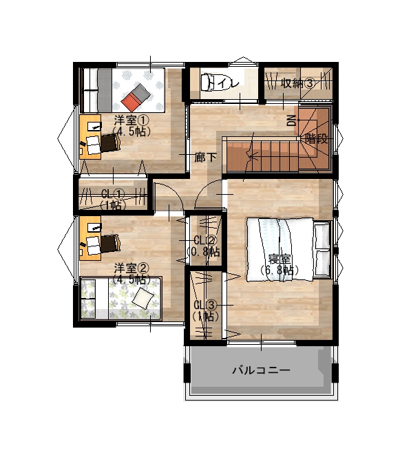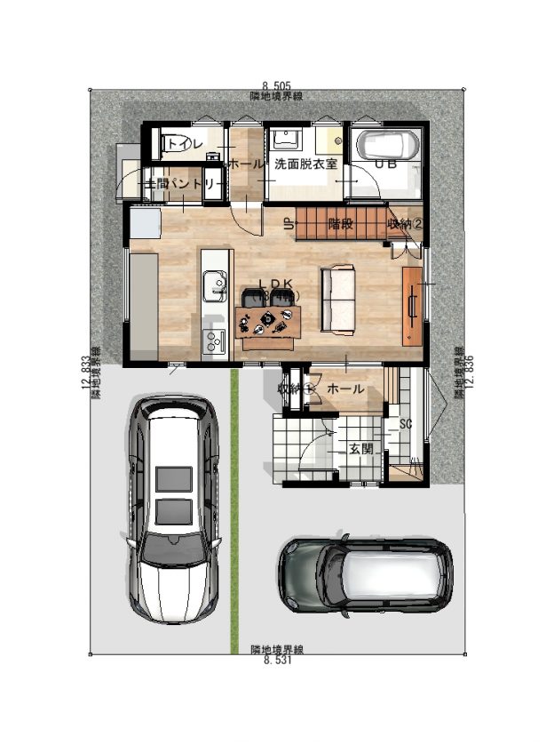 - 浴室暖房、浴室乾燥機、洗面化粧台、トイレ2ヶ所